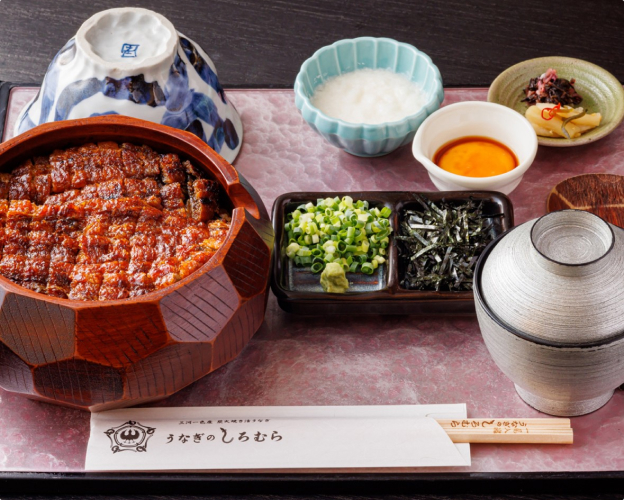 一膳目はそのまま、二膳目は薬味とともに、三膳目は出汁をかけて。三度変わる味わいの調和は、まさに名古屋を代表する芸術品です。しろむら独自の焼き加減が生む「外はパリッと、中はふっくら」とした食感、そして秘伝のタレが絡み合う極上のひとときをご堪能ください。