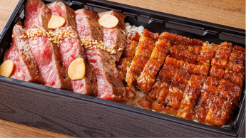 希少部位の和牛ミスジ肉ステーキとうなぎの贅沢なコラボ弁当です。